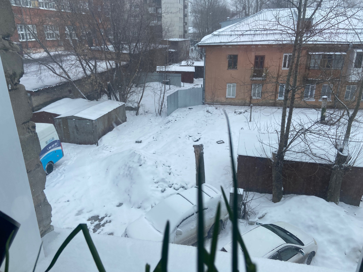 Только я зашла домой и села работать как за окном началась метель. Да такая сильная, что порой соседние здания было не видно. Только столб белой снежной пелены.