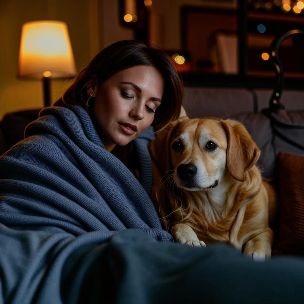 Тяжело вздохнув, Кира посмотрела на часы. Было уже далеко за полночь, а спать совершенно не хотелось. Она сидела на диване, закинув ноги на мягкий пуфик, и задумчиво смотрела на пол, где лежали разбросанные игрушки её собаки Лаки. Пёс, словно чувствуя её настроение, тихо подошёл и положил голову ей на колени. В тусклом свете ночника глаза Лаки блестели, будто две маленькие звёздочки.