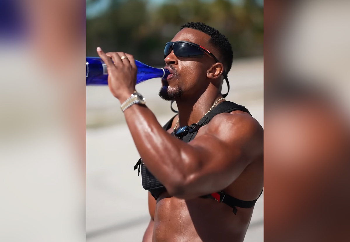Весь ролик в кадре мелькает одна и та же синяя бутылка воды — очевидно, завирусившееся видео просто проспонсировано производителем.