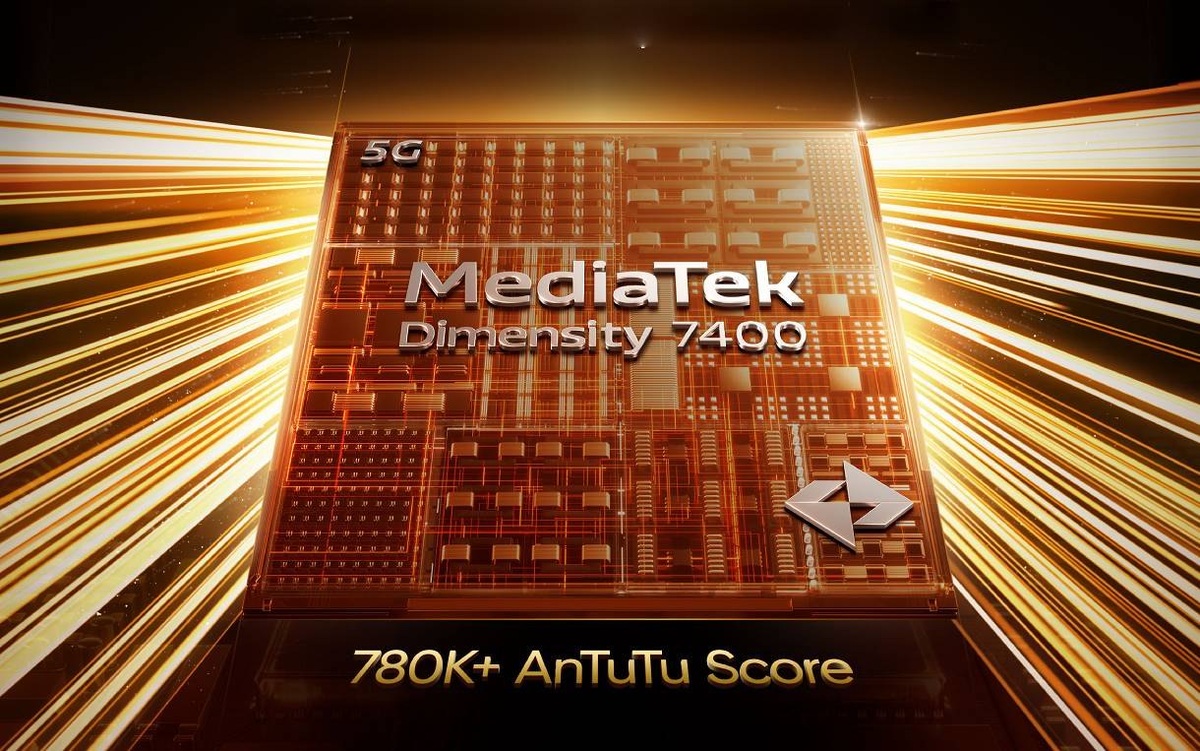 На рекламном постере демонстрируется, что смартфон Realme Narzo 80 Pro оснащается новейшим чипсетом MediaTek Dimensity 7400, который способен набирать более 780 тысяч баллов в бенчмарке AnTuTu.