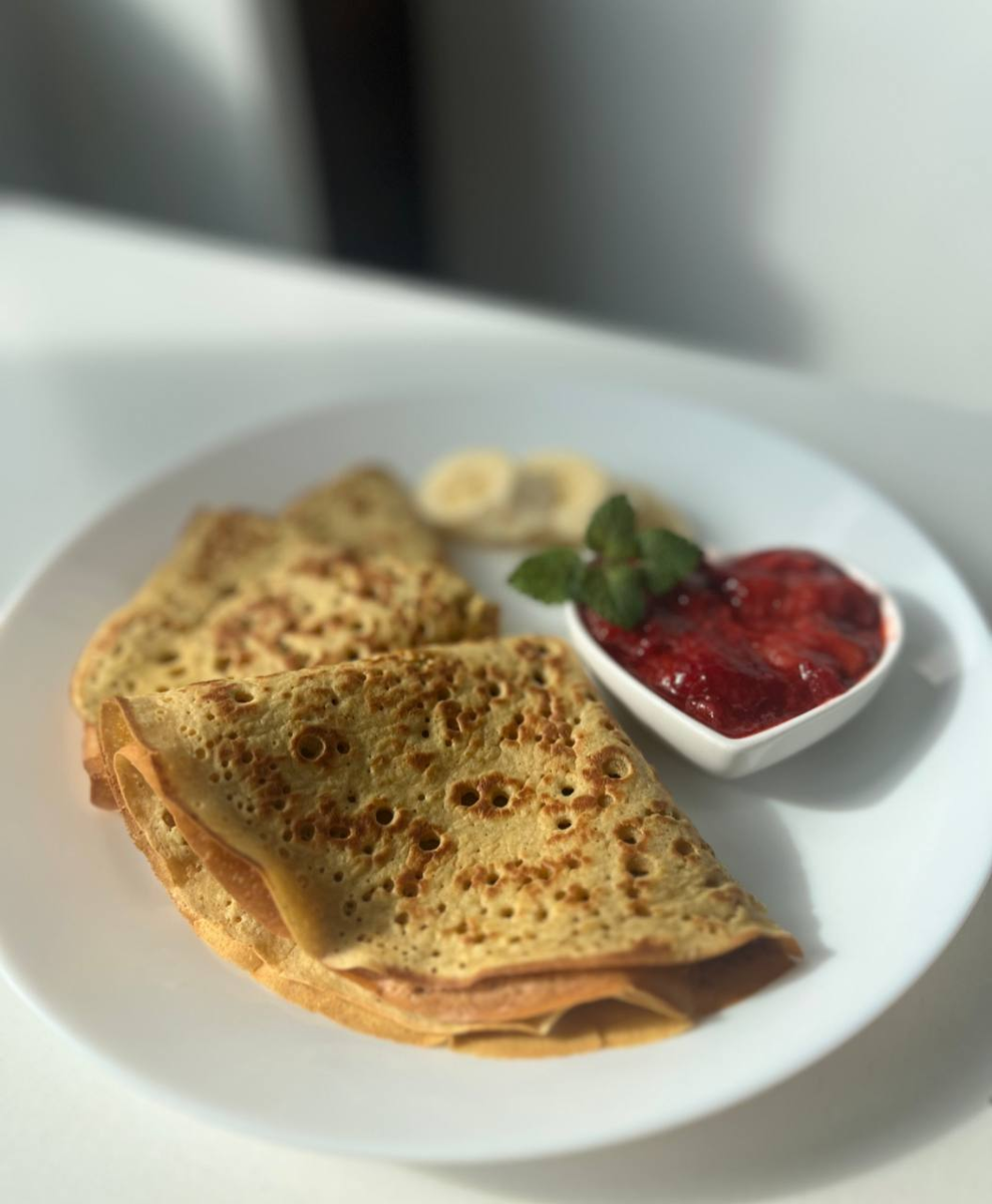 Если вы думаете, что блины — это завтрак из “прошлой жизни” до отказа от глютена, сахара и молочки — спешу переубедить вас. Да, путь к здоровому питанию иногда кажется чересчур строгим, но на самом деле он вкусный, уютный и очень разнообразный. Главное — найти свои рецепты. У меня был такой страх: «Ну всё, прощай, завтрак выходного дня…» Но оказалось — можно и без вреда, и без вздутия, и без чувства вины. И даже вкуснее, чем раньше. Вот рецепт тех самых блинчиков, которые не разваливаются, не резиновые, не требуют “всё включено” на кухне и радуют с первой ложки теста до последнего укуса. 📝 Ингредиенты: • 60 г нутовой муки (просеять) — добавляет белок, даёт насыщение • 40 г овсяной муки (без глютена) — делает текстуру нежной • 1 ч. л. разрыхлителя или соды без алюминия • 150 мл газированной воды — да, именно газировка даёт ту самую “воздушность” • 2–3 ст. л. сиропа топинамбура или кленового — мягкая сладость, без скачков сахара в крови 🔄 Как готовить: 1. Смешайте сухие ингредиенты. 2.