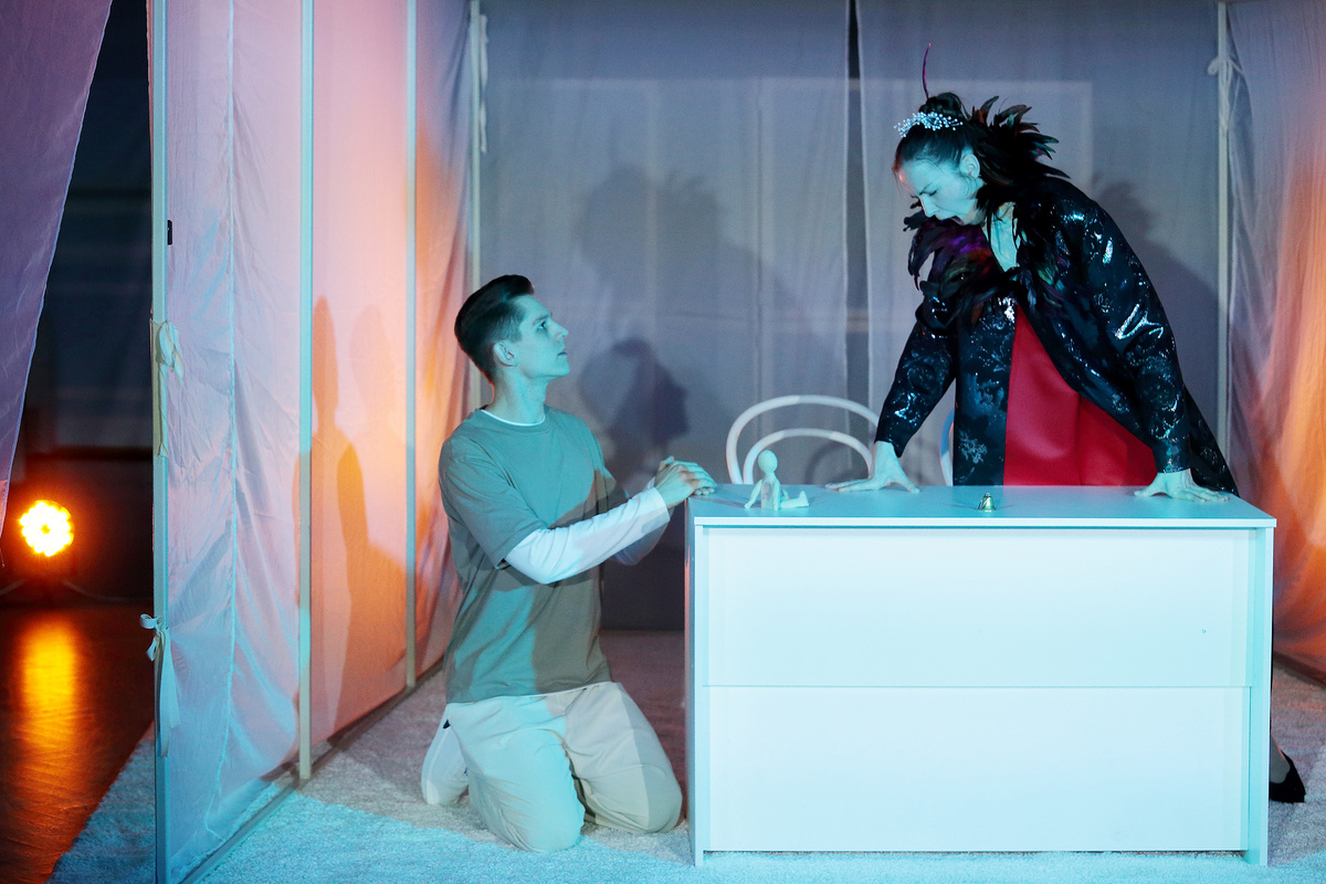 А ещё — редкое. Детям на спектакле понравилось всем, сколько их там было. Они с удовольствием смотрели, как лёгкий полиэтилен превращается в волны, защитный кокон, волшебный вихрь. Как в истории законное место занимают золотая рыбка, бабочка и лягушка. Как мальчик переживает операцию, как тонет в бассейне — и действительно сопереживали. И отдельное моё спасибо за костюмы. Идеально подходящие героям, выверенные и говорящие.