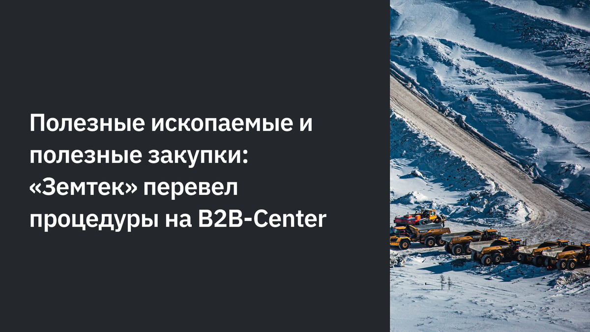 Горнопромышленный холдинг «Земтек» специализируется на полном цикле добычи и переработки полезных ископаемых – от промышленного строительства и горных работ до поддержки жизнедеятельности месторождений. Чтобы повысить скорость и эффективность рабочих процессов, «Земтек» перевел закупки всех компаний холдинга на электронную торговую площадку B2B-Center. При выборе ЭТП предприятию была важна репутация партнера на рынке, функциональность и скорость интеграции с внутренними системами. Всем этим критериям соответствует B2B-Center, входящий в группу компаний наряду с РТС-тендер и ОТС и являющийся разработчиком облачной платформы для сквозной автоматизации закупок B2B Altis. На торговой площадке «Земтек» планирует размещать 100% годового объема закупок всех необходимых услуг и товаров, включая запасные части к спецтехнике, логистические услуги и т.д. «Переход на B2B-Center – это стратегический шаг, который позволит нам ускорить закупочные процессы и сократить временные затраты. Нам важно рабо