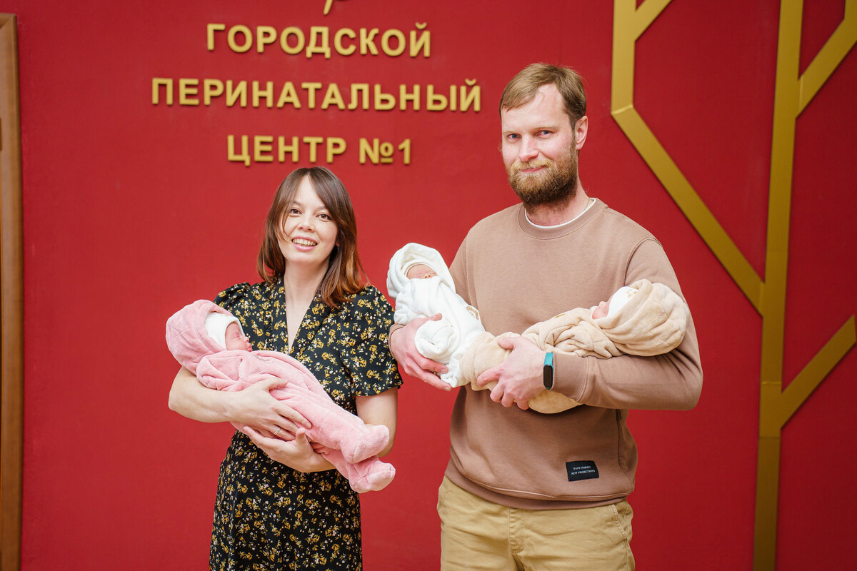 На выписке счастливую многодетную маму встречал любимый муж Михаил, а дома ждали два старших брата.