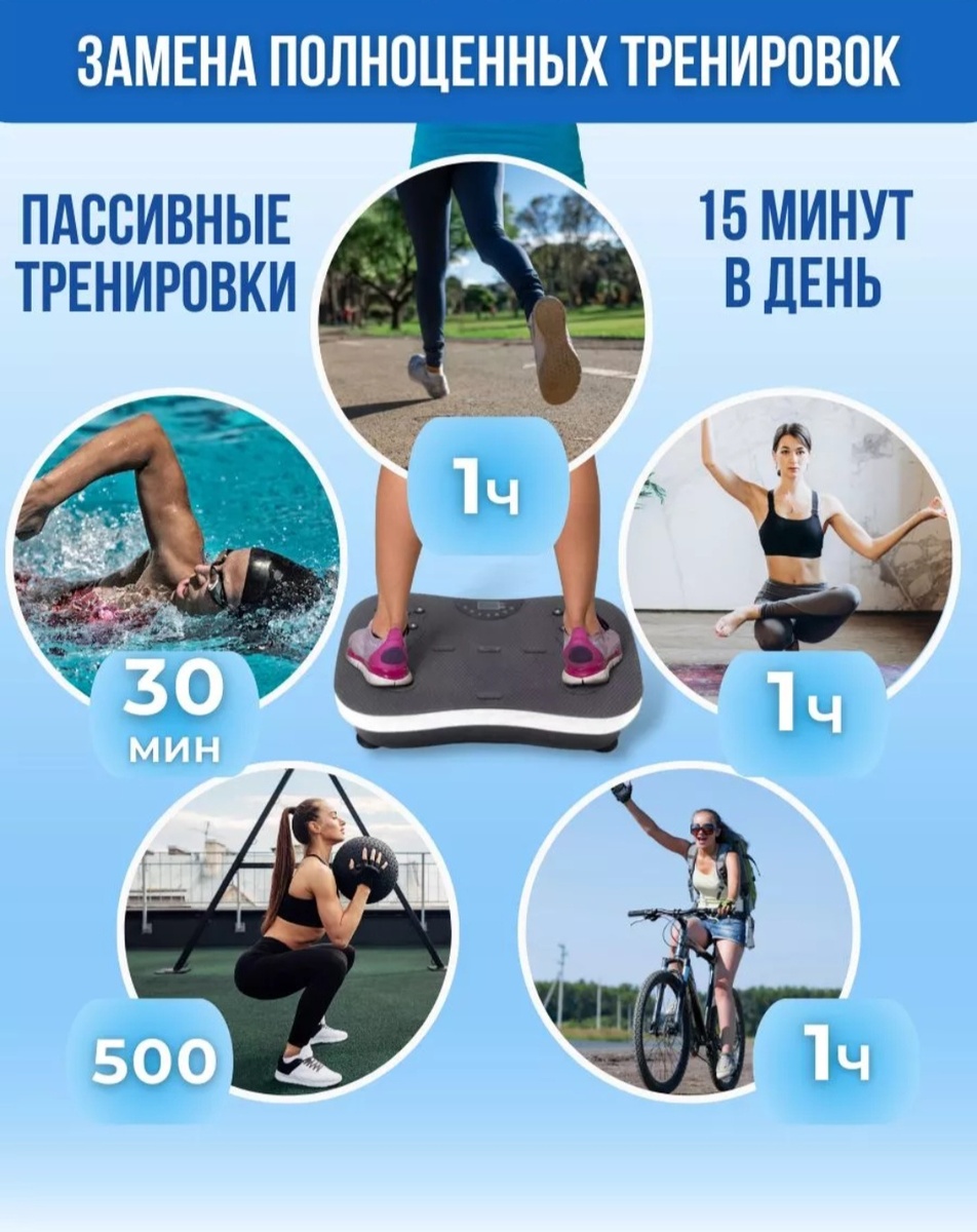 ✨️Виброплатформа: современный путь к здоровью и красоте Виброплатформа - это инновационный домашний тренажер, который помогает поддерживать физическую форму с помощью вибрационного воздействия на тело. Давайте разберемся, в чем её основные преимущества и особенности использования. 🎮Основные функции: * Поддержание сердечно-сосудистой системы * Укрепление мышц * Снижение веса * Нормализация общего состояния организма 🚩Преимущества использования: 1. Высокая эффективность: 10 минут на платформе = 45 минут бега 2. Подходит для людей с разным уровнем подготовки 3. Можно использовать при весе до 150-200 кг 4. Помогает в борьбе с целлюлитом 5. Улучшает сон и снимает стресс 6. Укрепляет кости и суставы ⛳️Особенности тренировок: * Оптимальная длительность: 10-15 минут * Лучшее время: утро или вечер * Можно просто стоять или комбинировать с упражнениями * Для усиления эффекта рекомендуется сочетать с правильным питанием ⛔️ Важные противопоказания: * Беременность и лактация * Острые воспалител