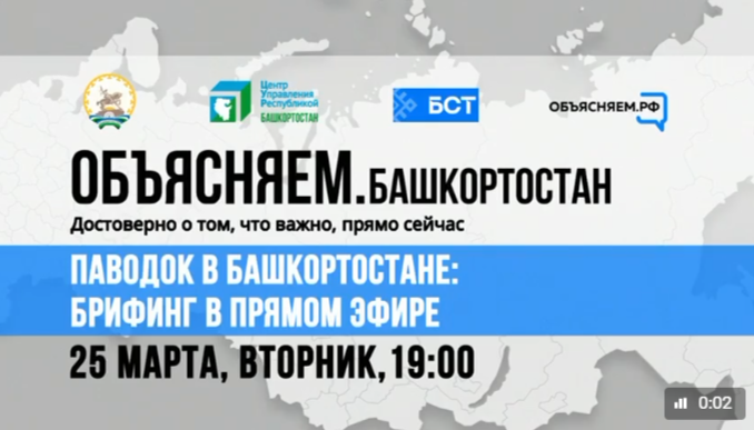 Смотрите трансляцию на телеканале БСТ, а также в соцсетях телеканала, ЦУР Башкортостана и Правительства республики. 25 марта в 19:00.