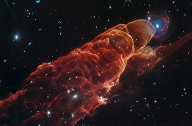 Каждое новое изображение космического телескопа James Webb доказывает: перед нами инструмент, который меняет представление об устройстве вселенной. Недавние снимки – очередное тому подтверждение. Webb запечатлел оранжевые потоки межзвёздного газа в мельчайших деталях на расстоянии 630 световых лет от Земли. На научном языке это протозвёздный выброс Herbig-Haro 49/50 (HH 49/50), также известный как "Космический Торнадо".