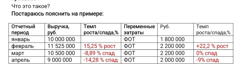 В 1С можно запрограммировать уравнения операционных рисков для контроля прибыли. Обратите внимание , что темпы роста разные. Уравнения операционных рисков показывают руководителю/собственнику над чем нужно поработать, что бы стабилизировать ситуацию. Например разработка другого KPI или же вод новых позиций в портфель продаж. Дело в том, что если темпы роста затрат значительно больше темпов роста выручки, то маржа снижается автоматически. Формула расчета маржи: Выручка( руб.)-Переменные затраты( руб.) =Маржа(руб.) В этом примере я акцентировала затраты на ФОТ, но такой анализ нужно делать по всем статьям затрат: сырье, упаковка, закуп товаров, энергоресурсы. Именно поэтому настройка этого отчета в 1С будет крайне необходима, а если такой отчет делать ежедневно, не дожидаясь окончания отчетного периода, то этот отчет снижает риски не достижения прибыли. Инструменты стабилизации маржи есть, но сначала нужно увидеть проблему. Автоматизируйте этот отчет, он крайне необходим для управления