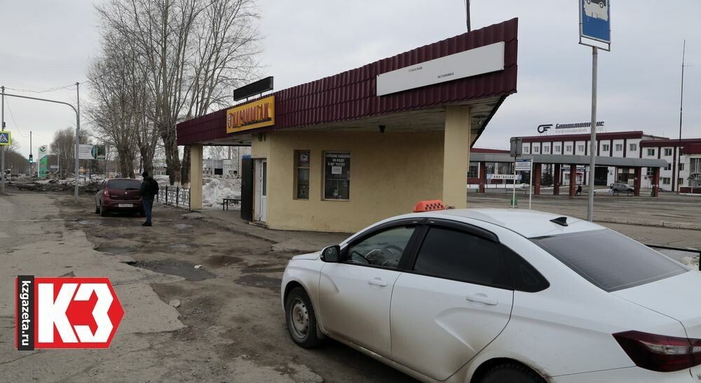 Продуваемый со всех сторон павильон. Название остановки на табличке уже давно не читается, зато рядом есть яркая вывеска конторы, которая арендует здесь помещение. Даже дорожный знак, указывающий на остановку общественного транспорта, выглядит обшарпанным. Под ногами битый асфальт и ямы, где скапливается вода после дождей. А вся прилегающая территория беспорядочно заставлена машинами такси, поджидающими приехавших жителей и гостей города. Валяются мусор и сигаретные окурки. Нетрудно представить, какое впечатление производит на людей подобная картина.