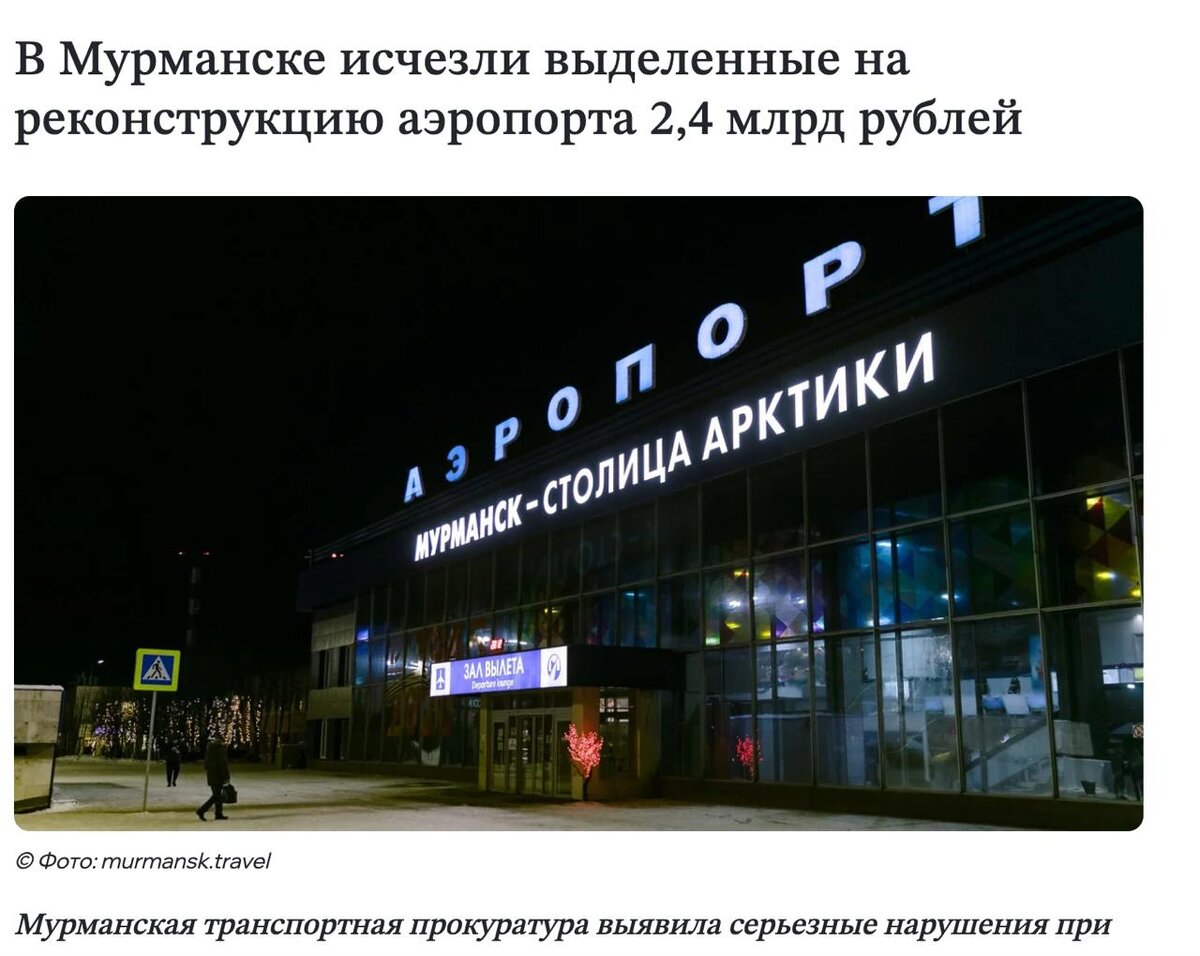 Из выделенных на реконструкцию аэропорта денег исчезли 2,3 млрд рублей. Прокуратура выяснила, что подрядчик выводил средства через фиктивные сделки через компании, которые не выполняли никаких работ. Проект должны были завершить еще в прошлом году, но фактически выполнили всего 5% всей работы.