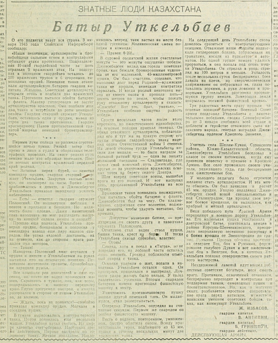 («Казахстанская правда», 25 марта 1945 г., воскресенье).