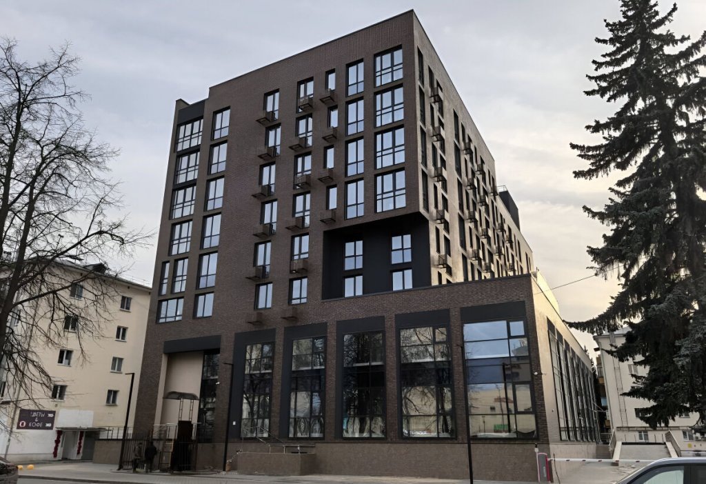 Как и положено камерному формату, проект привлекает внимание небольшим количеством квартир и разнообразием планировок. В восьмиэтажном здании всего 50 квартир — от однокомнатных до трехкомнатных площадью от 39,5 до 92,6 кв. м. Фасад выполнен в сдержанной и строгой темно-коричневой цветовой гамме.