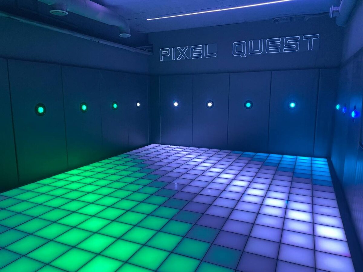 Одна из важных особенностей наших локаций - замкнутое помещение! На самом деле, это очень важная история, потому что, когда помещение полностью замкнутое - игры становятся интереснее! Плюс так можно создать освещение правильное, непосредственно для самой игры не только на полу, но и на стенах, на потолке. Если у нас замкнутое помещение, то во время игры люди начинают врезаться в стены. И дальше им очевидно больно. если стены твердые!) Так вот перед нами и встала задача, чтобы стены были мягкие! На нашей первой локации мы приклеили поролон. Все казалось неплохо, пока дети не стали дергать и превращать стены в сыр! Если вы посмотрите на фото, видно, что нет наших классических стеновых панелей. На первой локации мы сначала делали поролон, а сверху натянули баннерную ткань. Но когда мы стали строить локации дальше, стало понятно, что поролон - это не решение. Потому что нам за стенами нужно прокладывать провода, чтобы установить кнопки. При чем к проводам нужен доступ! Как сделать стены