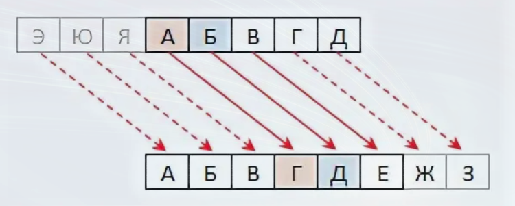 Шифр Цезаря относится к группе подстановочных шифров. Его принцип основан на сдвиге букв алфавита на фиксированное число позиций. Например, при сдвиге на три буквы символ «А» превращается в «Г», «Б» – в «Д» и так далее.
