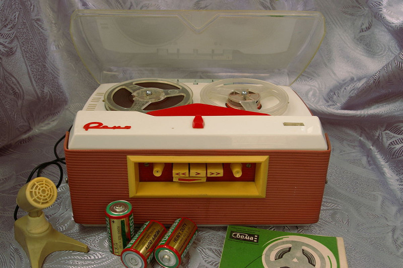 Магнитофон «Романтик» достался мне по наследству от старшей сестры Оли. Она уехала после школы учиться в Ленинград, поэтому мне досталось всё имущество сестры – комната, кровать железная, стол деревянный, этажерка деревянная… И магнитофон. Роскошь запредельная. Это фотография из Интернета, но у моего магнитофона также отвалилась часть букв и он стал просто Рома. Магнитофон был хорош до невыносимости! Нарядный, бело-красный, голосистый. Этот портативный катушечный магнитофон "Романтик" выпускал Горьковский завод имени Г.И.Петровского с 1965 года. В моём владении была первая модель «Романтика» (М-64), но в нашем семействе она появилась в семидесятых. Тётя Римма, будучи торговым работником на ниве промышленных товаров, купила нам эту звукозаписывающую роскошь. И я думаю, что просто в магазине на полочке магнитофоны тогда не стояли. Хотя плёнку я покупала в магазине. Она почему-то часто рвалась, и я склеивала её уксусом или лаком для ногтей. После этих манипуляций Рома, подавившись скл