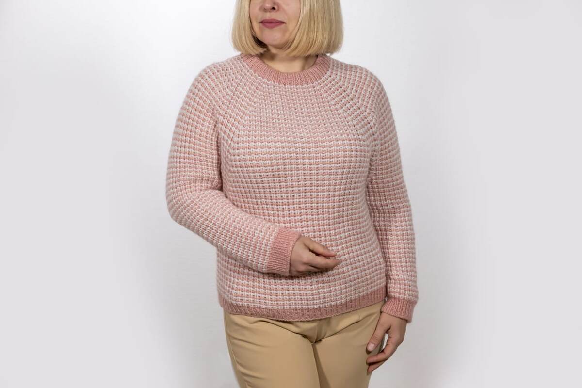 Узор джемпера состоит из 2 петель и 4 рядов в высоту.