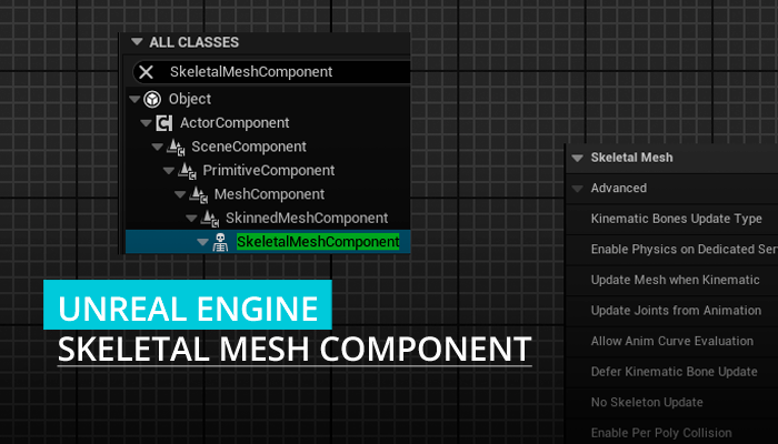 Рассматриваем компонент, отвечающий в Unreal Engine за отображение анимированных 3D-моделей в игре — Skeletal Mesh Component, разобрав детально все его Blueprint-функции, а также опции для настройки отображения и анимирования Mesh, а именно: