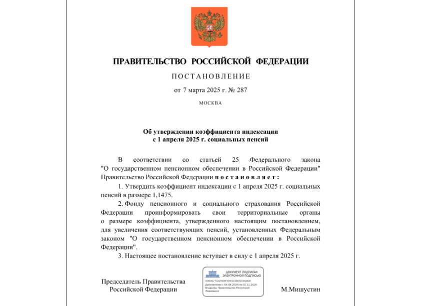 С 1 апреля 2025 года в соответствии с решением правительства Российской Федерации будет проведена плановая индексация пенсий. В результате этой меры прибавку получат и некоторые категории военных пенсионеров. Здравствуйте, уважаемые подписчики и гости канала Военное Право! Мы уже затрагивали данную тему. Сегодня покажем цифры. И да, это не первоапрельская шутка. Действительно повышение пройдет с 1 апреля текущего года (как и каждый год). Повышение затронет социальные надбавки к военной пенсии, размер которых определяется относительно расчётного размера пенсии (РРП). С 1 апреля 2025 года размер РРП будет проиндексирован на 14,75%, что повлечёт за собой пересмотр и увеличение надбавок, назначаемых военным пенсионерам. Повышение будет произведено автоматически, и пенсия за апрель будет начислена с учётом индексации социальных выплат. Постановление Правительства Российской Федерации от 07.03.2025 № 287 "Об утверждении коэффициента индексации с 1 апреля 2025 г. социальных пенсий". Следует о
