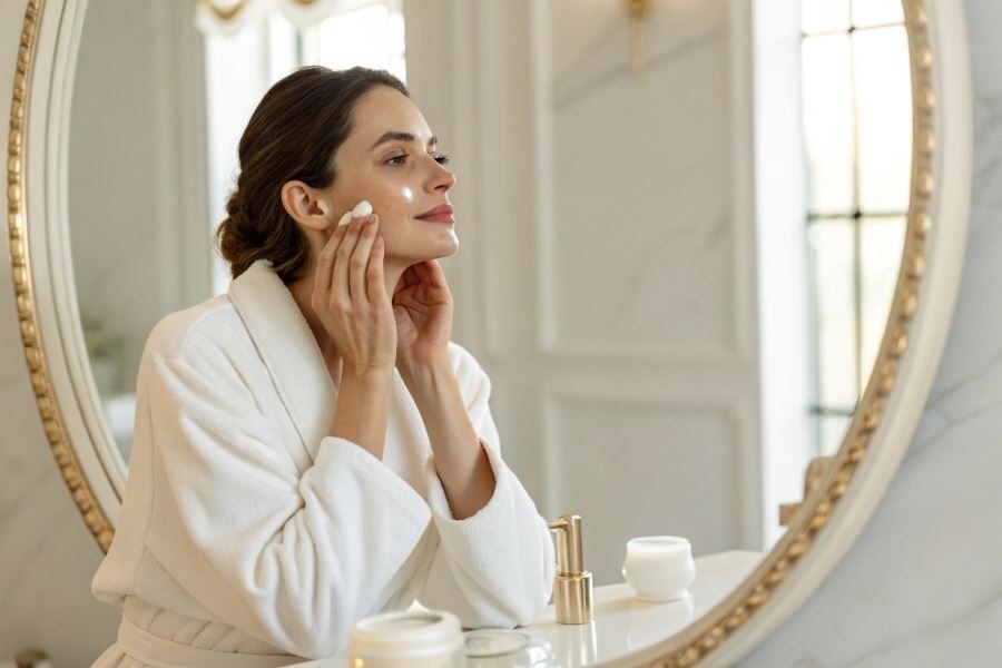 Увлажняющий крем перед нанесением румян обеспечит гладкую кожу.