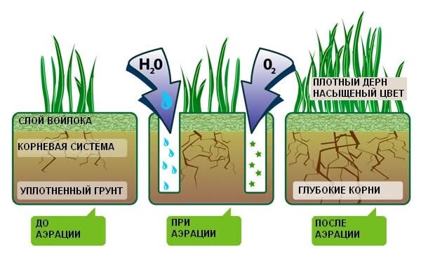 Газон - это мечта любого владельца участка в Подмосковье и не только. Согласитесь, приятно смотреть на аккуратный газон, играть на нем с детьми или загорать в солнечный день. Чтобы газон оставался ухоженным и красивым, очень важно проводить необходимые процедуры - стрижку, подкормку, скарификацию и аэрацию газона. Если вы не знаете, что такое аэрация газона и зачем она нужна, эта статья для вас. Аэрация позволяет вернуть газону свежий вид, процедура обеспечивает оптимальную дозу кислорода к корневой системе газона. С течением времени корни травы или злаковых культур образуют корку, кислород не попадает к корням. Как следствие - на поверхности образуются проплешины, а газон приобретает неухоженный вид. Чтобы этого не произошло, необходимо проводить аэрацию газона на участке. Обеспечение газона кислородом - вот основная цель аэрации. Также с помощью процедуры вы получаете следующие преимущества: 1. Почва проветривается, не образовывается избыток влаги и как следствие - загнивание гор