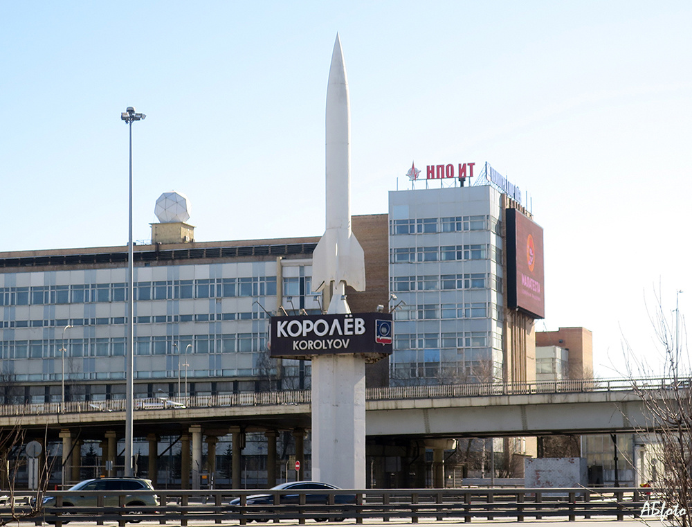 Королёв - город ракетный, а потому при въезде установлен макет баллистической ракеты Р-2.