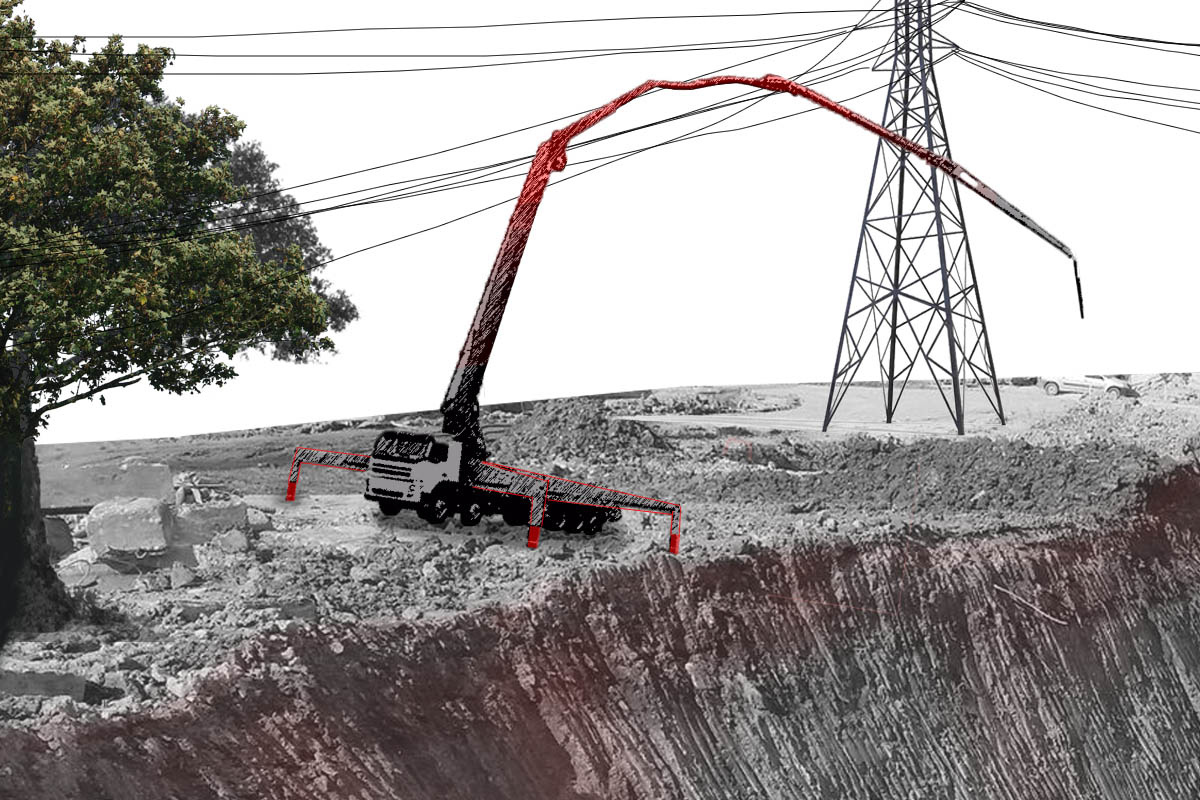 Например, для автобетононасоса с высотой стрелы 38 метров размер площадки будет 6х8 метров, а для 68 м — 14×14 м без учета особенности ландшафта.