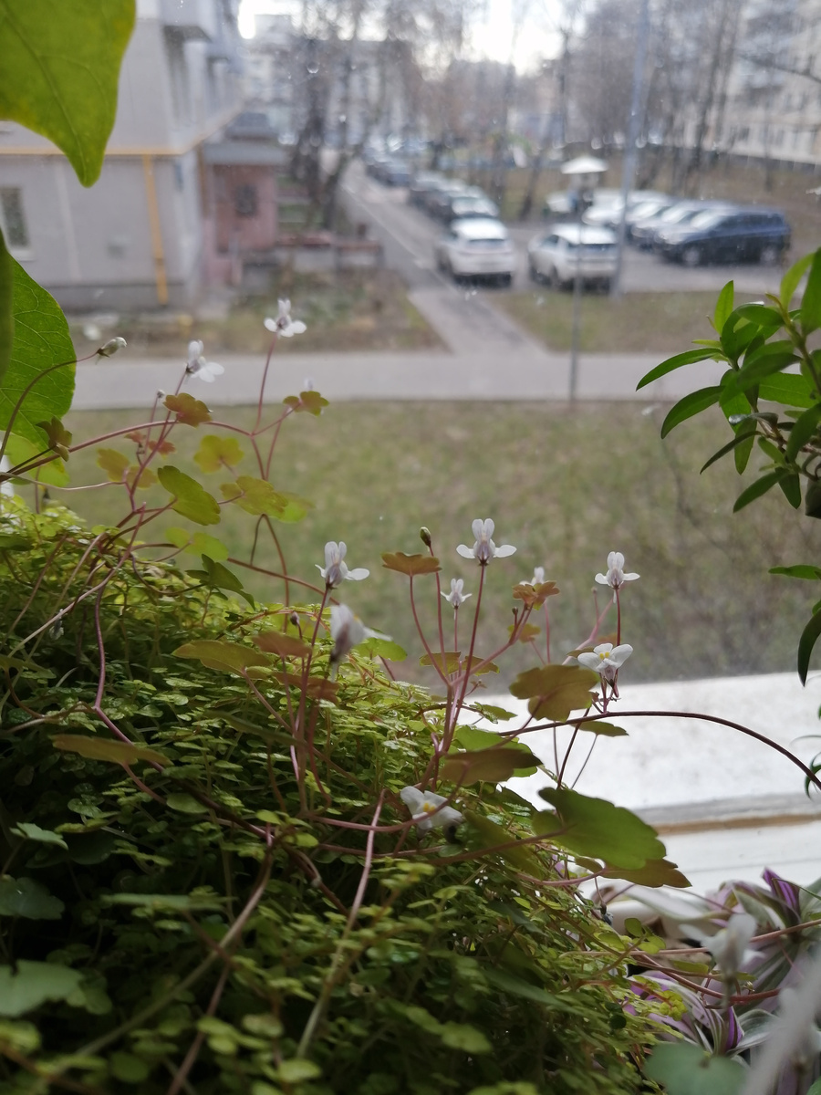 А цимбалярия растёт. И цветёт. Ей фиолетово! Она за пределы плошек давно выбралась и пора её срочно пристраивать.