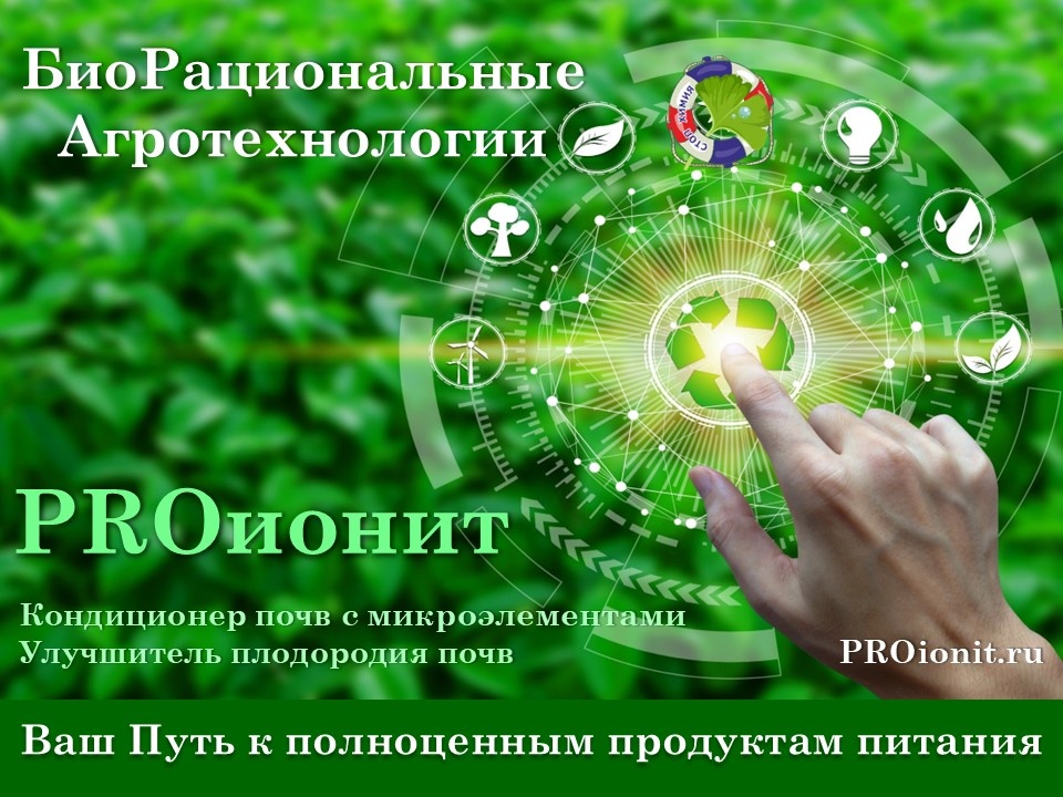 «PROионит» ИДЕАЛЕН ДЛЯ ПРОИЗВОДСТВА ОРГАНИЧЕСКОЙ ПРОДУКЦИИ. Кондиционер почв с Микроэлементами. Улучшитель плодородия почвы пролонгированного действия. PROионит — это аутигенный минерал морских отложений, моно призматический минерал из группы алюмосиликатов, обладающий высокими абсорбционными и катионообменными свойствами. PROионит минерал, водный алюмосиликат железа, кремнезёма и оксида калия непостоянного состава, относится к группе гидрослюд. PROионит (ионообменный сорбент + бесхлорное, калийное-фосфорное удобрение) найдут применение в качестве искусственного грунта с микроэлементами, в производстве сельскохозяйственной продукции как в открытом, так и в защищенном грунте (теплицах). Химический состав (непостоянный): двуокись кремния (SiO2) 47,6—52,9 %, окись калия (К2О) 4,4—9,4 %, окись натрия (Na2O) 0—3,5 %, окись алюминия (Al2O3) 5,5—22,6 %, окись железа (Fe2O3) 6,1—27,9 %, закись железа (FeO) 0,8—8,6 %, окись магния (MgO) 2,4—4,5 %, , вода (H2O) 4,9—13,5 %. Цвет (вариации): темны