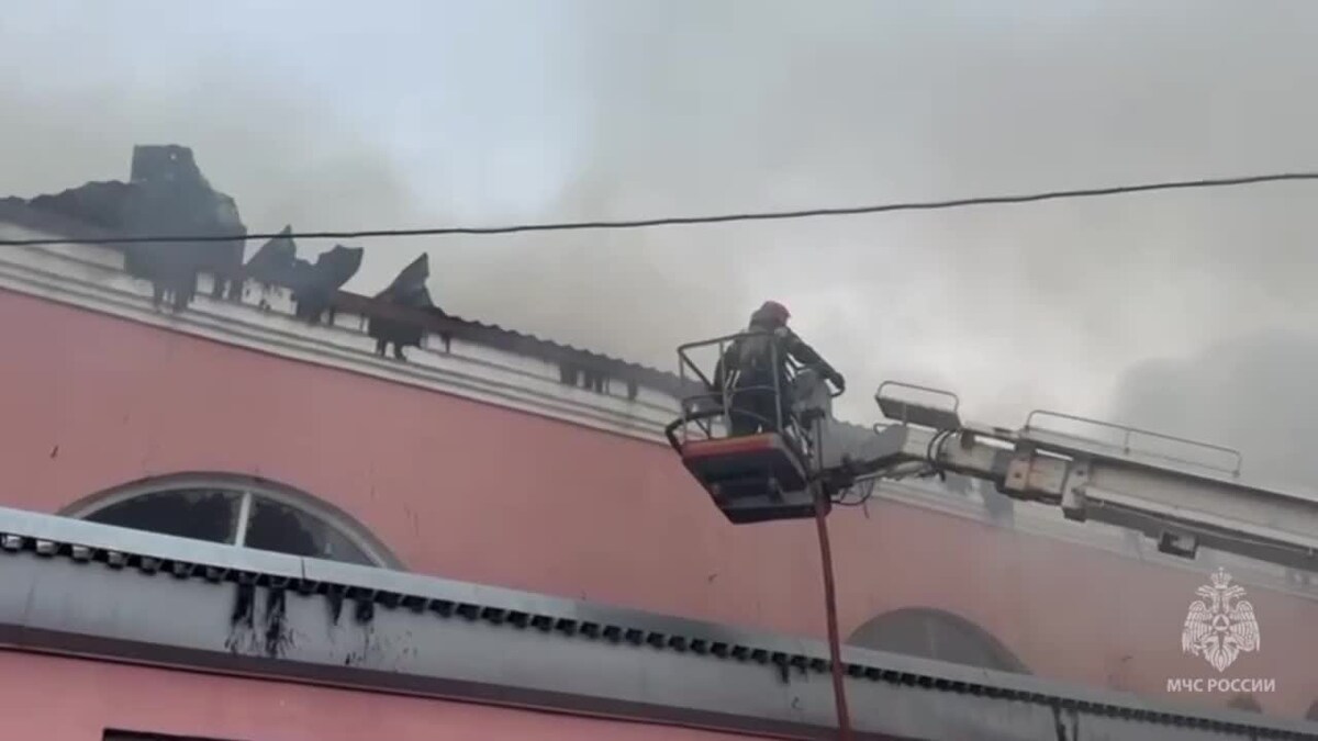 В настоящий момент спасатели продолжают проливку здания и перекрытий. К работам привлечены 25 человек и 9 единиц техники.