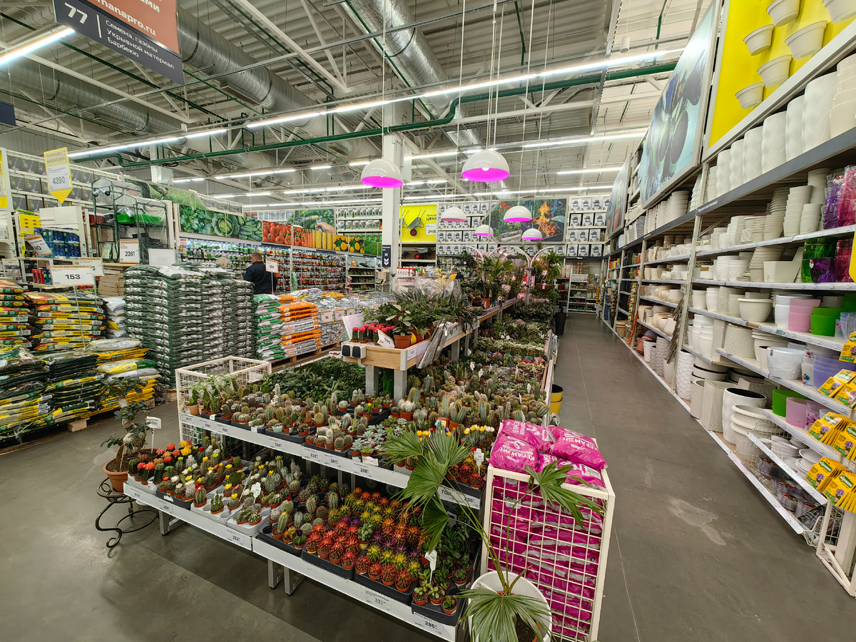 Выбрались тут на днях по ремонтно-строительным делам в бывший Леруа у нас в Калуге, а там сплошное садово-огородное и цветочно-горшечное изобилие))) Даже придется разбить на парочку отдельных обзоров, поскольку даже складывание фотографий в галереи не спасает от заметного объема)) Меня, конечно же, очень интересовало есть ли в этом изобилии стойка с уценкой))) Прямо вот с нее и начала свой осмотр, но к сожалению ничего годно-бюджетного на ней не оказалось и я пошла рассматривать регулярную экспозицию)) Цветов привезли много, честно вам скажу, что имела намерение что-то себе присмотреть, но на столько я еще не привыкла к нынешним ценам на цветы, что это серьезно охлаждало мое желание и намерение))) Из интересующего меня нашла банан. Я уже дважды высевала разные бананы семенами. Один не взошел уже точно, а второй пока еще жду, быть может мне улыбнется удача и он таки вырастет. Кстати, бананы меня манят чисто ностальгически)) Дело в том что почти пару лет мы с мужем жили в Абхазии и у нас