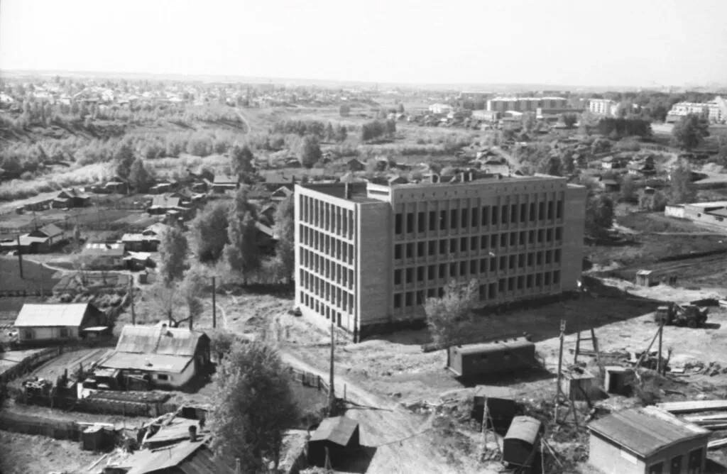 Долина малой речки за мостом по пр. Ленина, 55 А вид от здания (нынешнего ГУ МЧС) в сторону ул. Сибиряков-Гвардейцев (До 1980-Партизанская, до 1971-Садовая). За зданием панорама левого и правого берегов Искитимки.