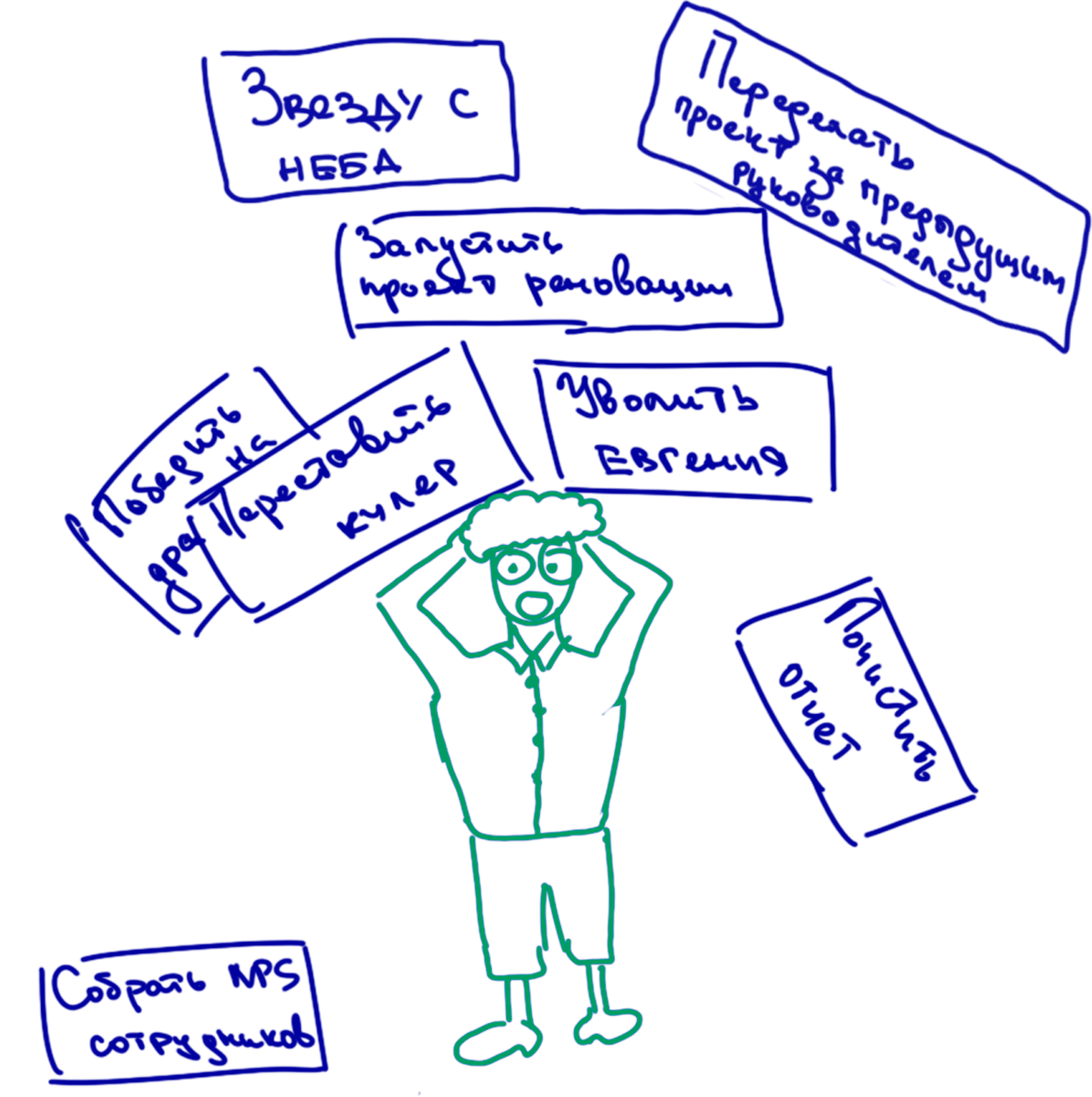 Один из самых полезных уроков, который мы вынесли из своего опыта управления: руководитель не делает ничего руками! Если редактор садится писать статьи, если академический директор начинает разрабатывать курс, если руководитель отдела продаж идет обзванивать базу, администратор кафе готовит кофе — все это значит только то, что он не справился с обязанностями руководителя.
