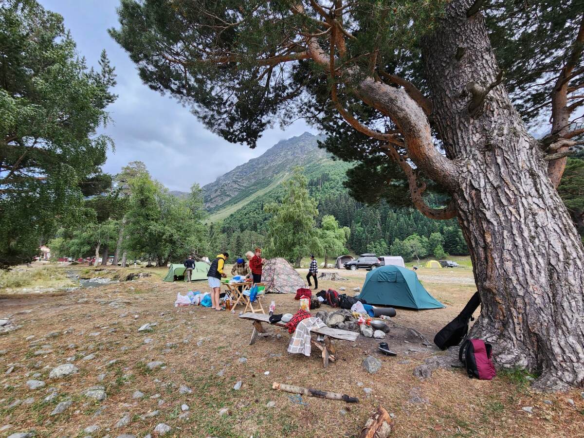 Ледниковая ферма- поляна, расположенная в долине реки Софии, на высоте около 2000 метров, у подножия горы Софии. На карачаевском языке -"Бугой-Стауат", в переводе- "ледовое стойбище". Конечно, в окрестностях здесь можно встретить стада мирно пасущихся коров и табуны лошадей, но туристов тут ещё больше, поэтому вполне можно переименовать "стойбище" в "кемпинг". С этого места стартуют два самых известных маршрута- к Софийским водопадам и Софийским озёрам. Конечно, можно договориться в посёлке о заброске "туда и обратно" на "Уазике", большинство так и делают, но гораздо удобнее разбить лагерь на несколько дней, чтобы успеть и пройти по маршрутам, и просто отдохнуть, полюбоваться днём на горы, ночью на звёзды, посидеть с гитарой у костра... словом, вдохнуть походной романтики. И если вас не испугают описанные ниже бытовые трудности (а они в любом походе одинаковые), то однозначно могу рекомендовать это место для остановки с палаткой! Всё-таки здесь поменьше туристов, чем на поляне Таулу, м