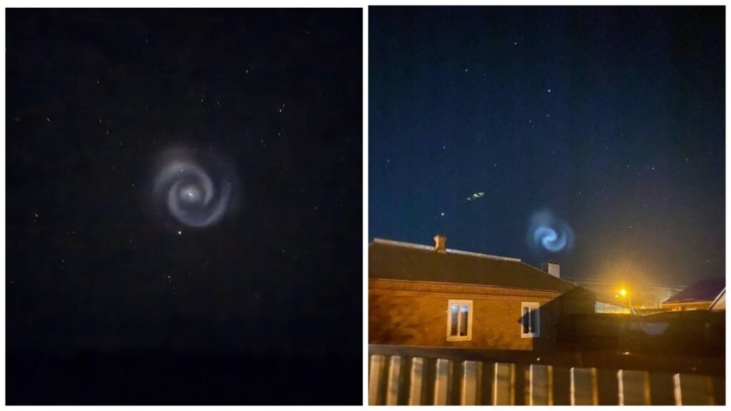 Местные жители отмечают, что спираль была видна довольно долго и выглядела так, как будто парила в небе. Многие снимали происходящее на телефоны, гадая о его происхождении.