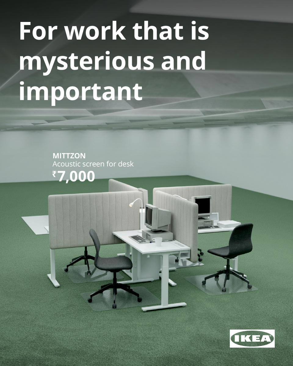 Пост от IKEA демонстрирует офисное решение, напоминающие минималистичный дизайн из сериала, включая акустические экраны для рабочих столов. Подпись к посту соответсвующая: