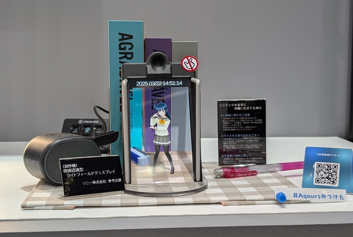На выставке AnimeJapan 2025 XR-студия Gugenka (XR — «расширенная реальность») показала цифровые фигурки «голомоделей», включая героинь Love Live! Sunshine, «Меланхолии Харухи Судзумии» и др. «Голо-» — в смысле голографических. Увидеть их можно на смартфонах с поддержкой AR, «дополненной реальности», так и в VR-шлемах вроде Quest. Самым эффектным экспонатом стал предоставленный Sony прототип небольшого дисплея «пространственной реальности» (spatial reality). Sony давно экспериментирует с дисплеями, которые отслеживают движения глаз зрителя и показывают стереоскопическое изображение без всяких шлемов и очков, — вполне подходящая технология для виртуальных 3D-фигурок. Относительно крупные экраны ELF-SR1 и SR2 стоят до 5000 долларов США, «голомоделей» показали на новом дисплее размером примерно со смартфон. Опытный образец посетителей впечатлил. А так персонажи пока в основном живут в смартфонах, компания ими активно торгует. Презентацию подкрепили выступлением сэйю Андзю Инами и Рикако Ай