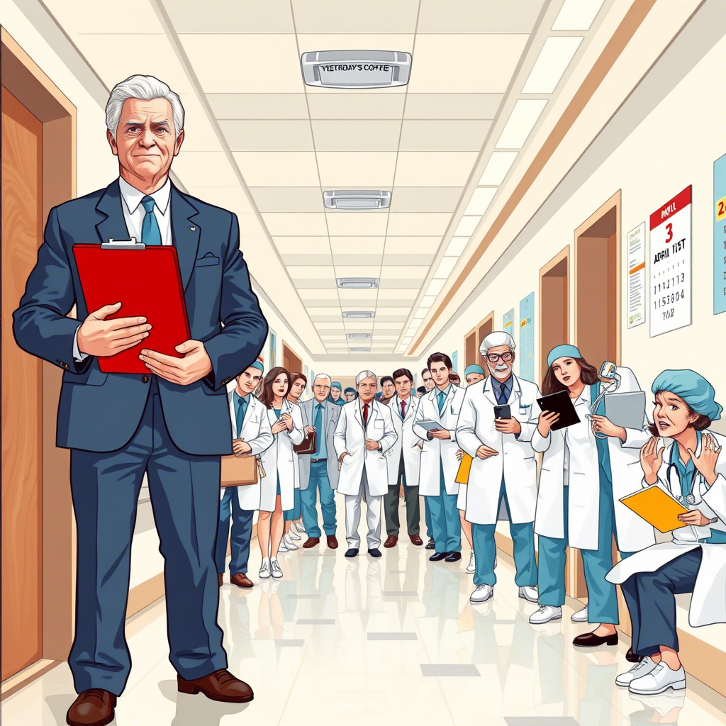 Наступило утро первого апреля. Больница жила своей обычной жизнью: в приемный покой поступали пациенты, в хирургии готовились к операции, в лаборатории исследовали биоматериал. Ничто не предвещало грядущего переполоха, если не считать наших едва сдерживаемых улыбок и многозначительных взглядов при встрече. Первый этап плана начался с "утечки информации" - наша санитарка Таня, мастерски изображая взволнованность, шепотом сообщила двум самым болтливым медсестрам, что сегодня ожидается внеплановая проверка, но главврач запретил об этом распространяться, чтобы не создавать панику. Эффект превзошел все ожидания - уже через полчаса весь персонал больницы шепотом обсуждал грядущий визит комиссии, а некоторые особо впечатлительные сотрудники начали лихорадочно перебирать документацию и протирать уже и так сверкающие поверхности. В назначенное время в холле появился наш "проверяющий" - Коля из нашей любимой бильярдной, которого мы специально одели в строгий костюм, снабдили официальным планшетом и научили держать соответствующее выражение лица. Его появление вызвало настоящий шок - я видел, как у одной из медсестер задрожали руки, а обычно невозмутимый заведующий отделением вдруг начал нервно поправлять халат. Коля мастерски играл свою роль - с каменным лицом он методично обходил кабинеты, делая пометки в блокноте, задавая неудобные вопросы и находя несуществующие нарушения. Особенно запомнился момент, когда он в ординаторской придирчиво осмотрел чашку с кофе, после чего смерил линейкой высоту напитка и спросил, почему на полке стоит неполная кружка. В кабинете УЗИ он провел пальцем по идеально чистому аппарату, затем демонстративно стряхнул несуществующую пыль и многозначительно покачал головой. Апогеем стал визит в процедурный кабинет, где наш "проверяющий" потребовал журнал температурного режима за 2015 год, а когда растерянная медсестра начала что-то бормотать про сроки хранения документации, просто тяжело вздохнул и сделал пометку в своем блокноте, демонстративно поставив минус и обведя его в кружочек.