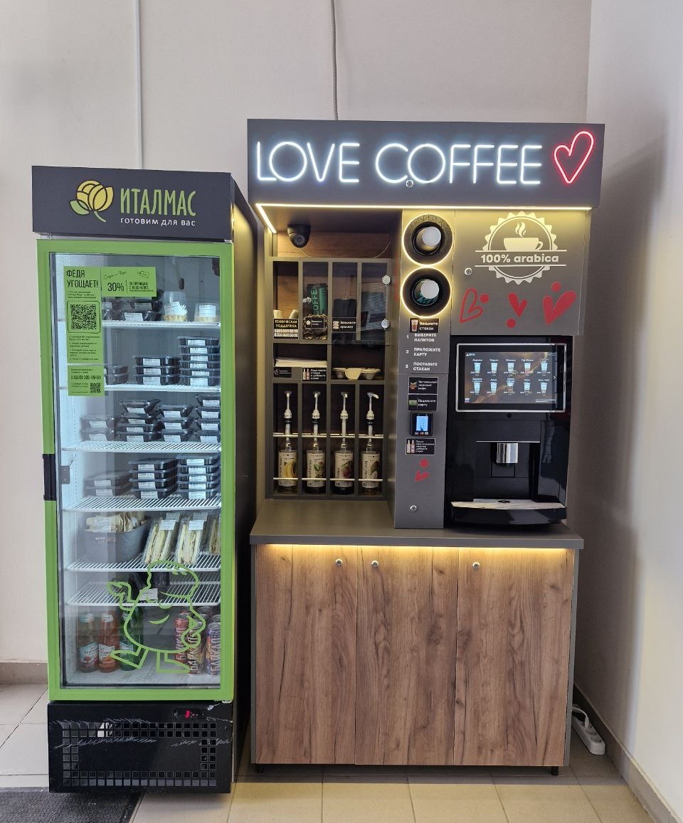 Выручка вырастет в 2,5 раза на продаже готовой еды и снеков в торговой точке. Увеличится количество регулярных покупок и новых клиентов. Мы в headline сделали микромаркеты нового поколения, которые отлично дополняют кофе стойки, уже шесть месяцев тестируем спрос на готовую еду и снеки с нашим клиентом. Продажа кофе в кофейне самообслуживания — прибыльный бизнес, но если добавить к нему готовые перекусы, средний чек вырастет со 115 ₽ до 350 ₽, а общая выручка — в 2–2,5 раза. Как? Достаточно предложить клиентам правильные снеки и обеды — те, что быстро разбирают в микромаркетах рядом с кофе стойкой. Один из примеров: бизнес центр 10 этажей, центр города, примерная численность 500 человек. В шаговой доступности 5 вариантов где можно поесть: 2 столовых, 2 кафе с бизнес ланчами и ростикс. 70 - 90 тыс. руб. в месяц в среднем продажа кофе и других напитков из кофе аппарата Мы проанализировали продажи в кофейнях самообслуживания, где стоят наши микромаркеты headline, составили список самых по