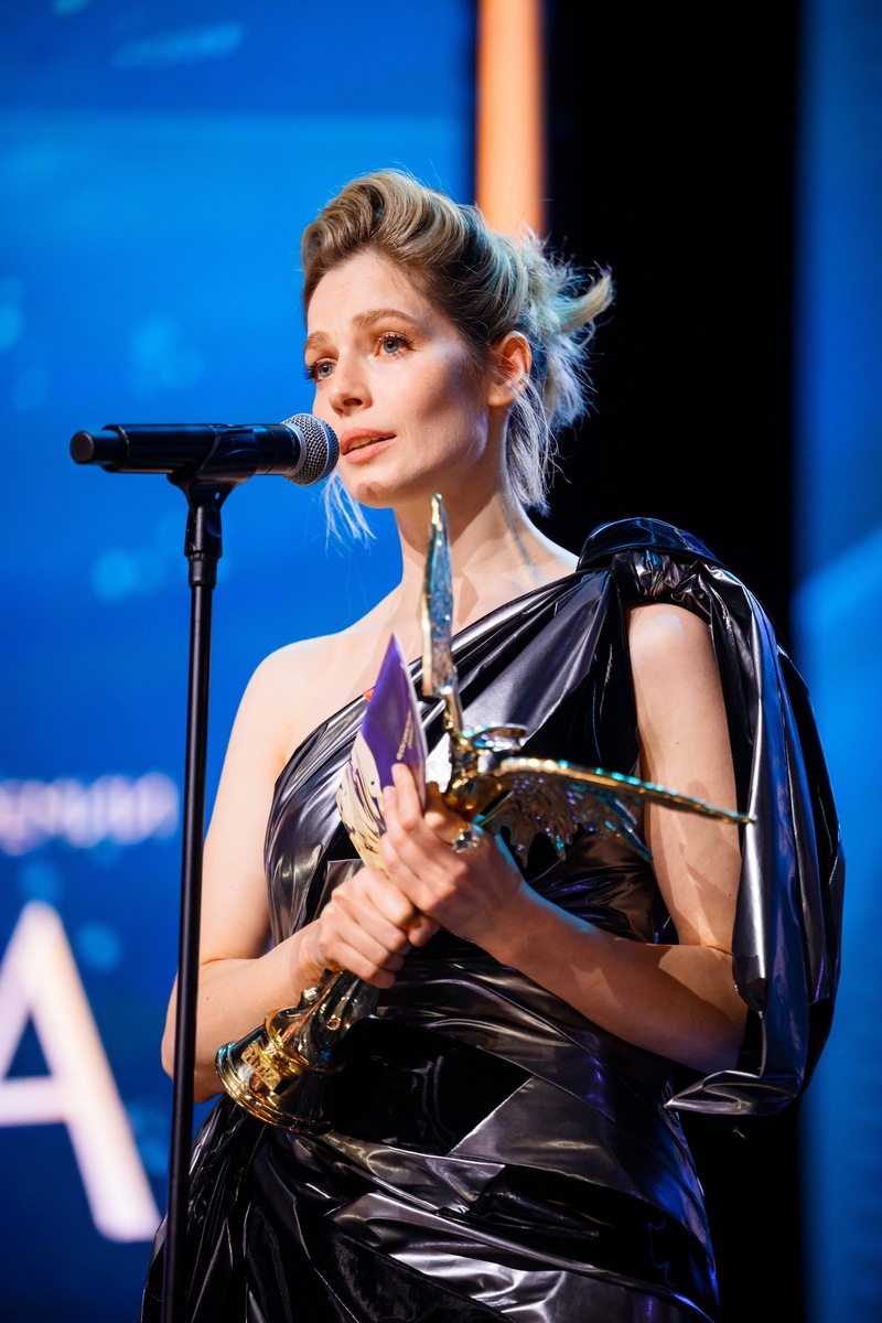 «Посвятила награду Жене, но передать физически могу Шульц», — завершила свою речь актриса.