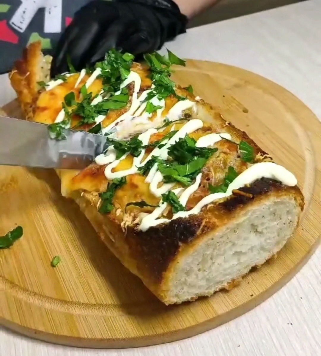 Ингредиенты: - Батон – 1 шт. (берите побольше, аппетит приходит во время еды) - Яйца – 5 шт. - Бекон – 150 г - Сыр разных сортов – 200 г - Зелень (петрушка, укроп) – 30 г - Чёрный молотый перец – по вкусу Приготовление: 1. Срезаем верхушку батона и вынимаем мякоть. Не увлекаемся — дырки нам не нужны, это не Титаник, а вкусный кораблик. 2. Аккуратно разбиваем яйца в батон, оставляя желтки целенькими — отправляем их в плаванье на нашей хлебной лодочке, как маленькие солнышки. 3. Посыпаем нарубленной зеленушкой (укроп, петрушка-на Ваш вкус). 4. Далее выкладываем наш любимый бекончик, распределяя по его длине щедрые полоски бекона. Чем больше батон -> тем больше бекона в него влезет - > чем больше бекона на борту нашей лодочки, тем вкуснее. 5. Немного посыпаем перчиком, как говорится на глаз, а глаза у всех разного размера 😊 6. Натираем любые сорта сыра и тоже загружаем на наш кораблик, обычно чем больше сыра тем лучше, но необязательно ложить столько чтоб тянулся до потолка.