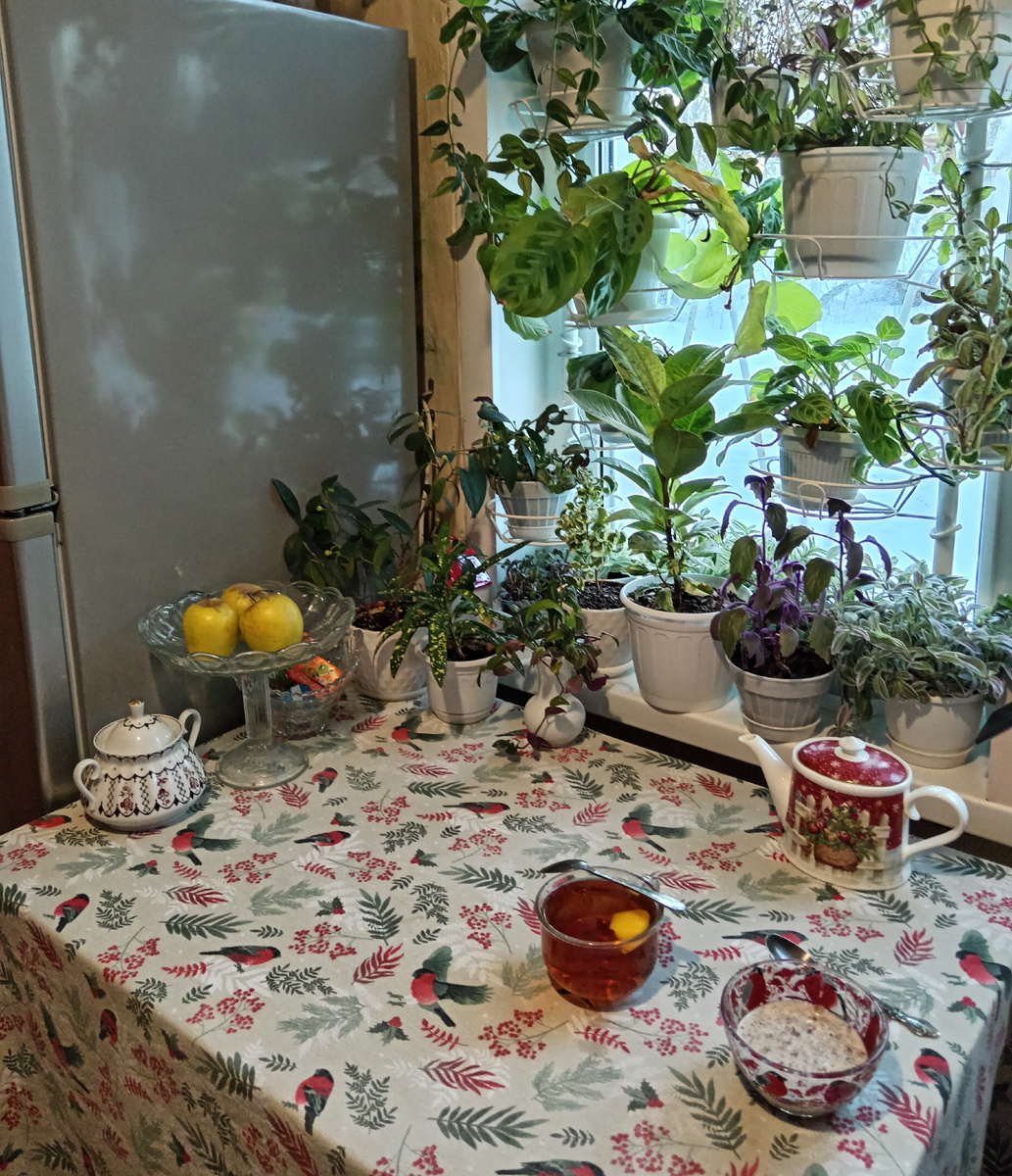 Чай пила и смотрела на птичий гвалт на кормушке. Конфетти птичье.