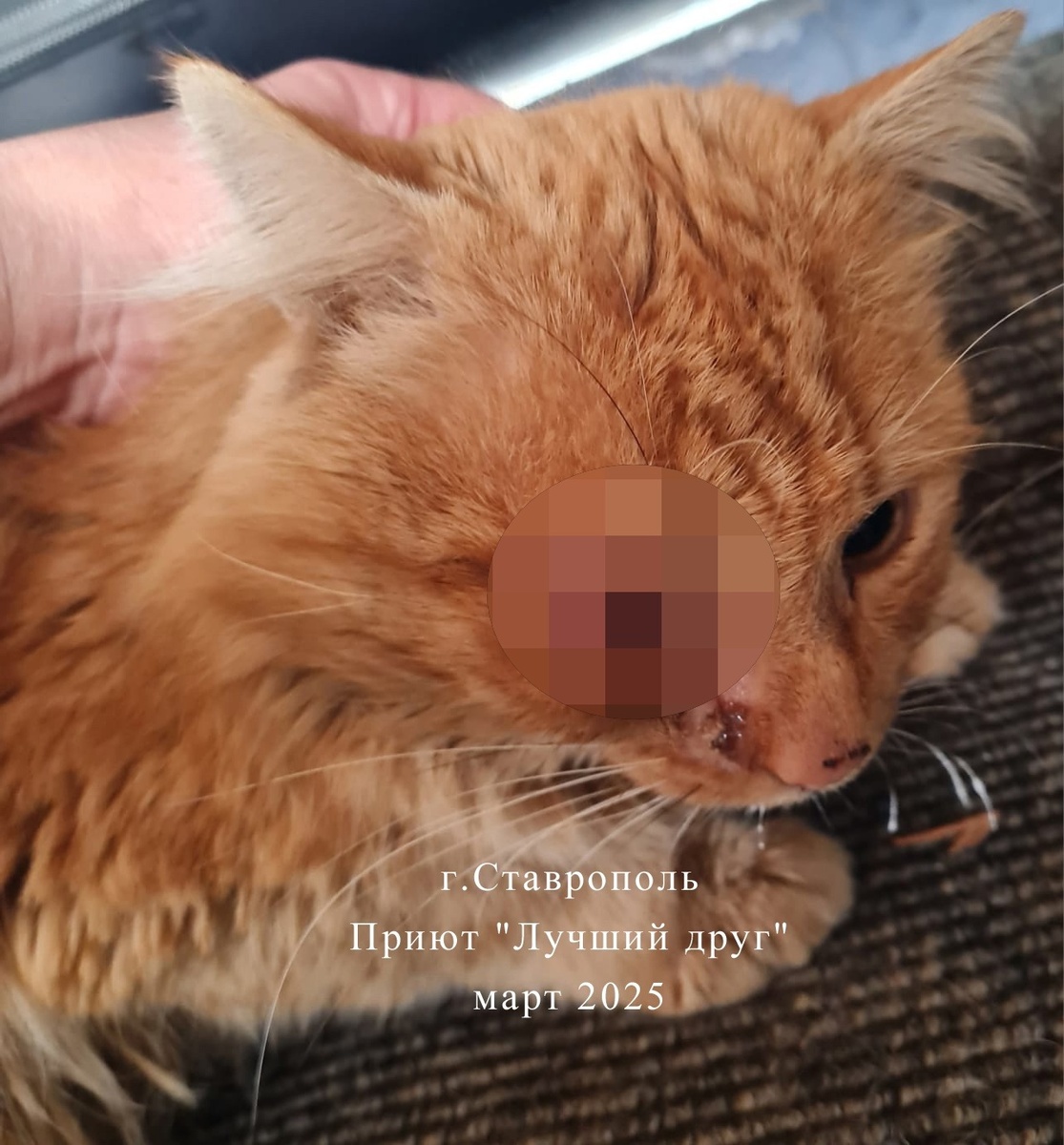 Рыжего котика совершенно случайно заметила девушка. Если бы котик не мяукнул очень вовремя, то так и остался бы сидеть бедолага без помощи на улице. Кота доставили в клинику, глаз под удаление, спасать там уже нечего. Сам кот истощенный, сильно перемерз на улице и сил сопротивляться спасителям у него уже не было. Несколько дней кот провел на стационаре, после того, как состояние его стало лучше, ему провели энуклеацию глазного яблока и одновременно кастрировали. На рентгеновском снимке видна пуля в холке у кота, но что с ней делать, удалять или не трогать, чтобы не навредить животному, решать будем позже. Рыжему красавцу сейчас нужно восстанавливаться и набираться сил. Сначала кота назвали Фокс, но потом решили, что такие имена уже были, и теперь он #лд_кот_Феррит, просим любить и жаловать! А так же просим помощи в оплате счетов за огненного котика, который чудом остался жив. Реквизиты приюта: 1. ОО ПБЖ "ЛУЧШИЙ ДРУГ" по СК. ИНН/КПП 2635700552/263501001 ОГРН 11226000001281 р/сч. 40703
