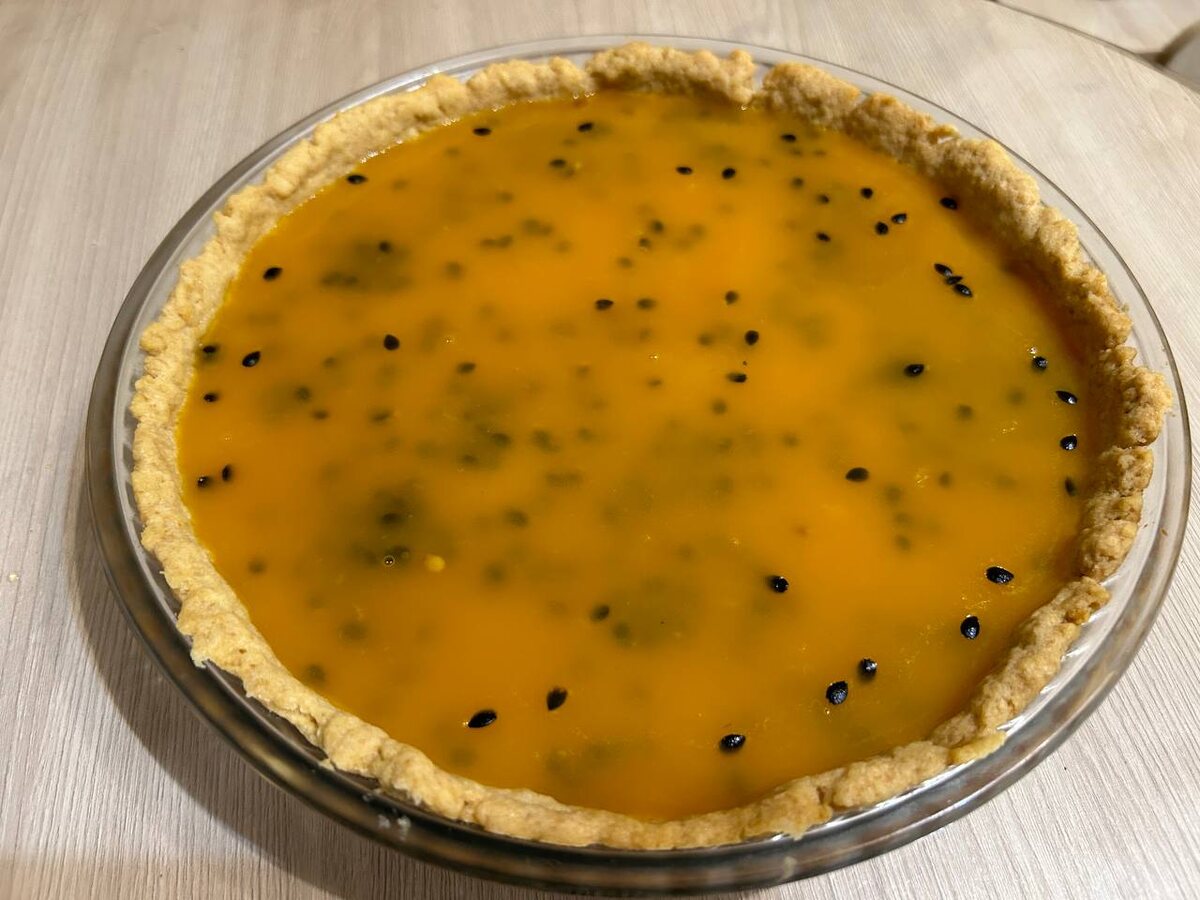 🌟 Всё готово! Пирог получается невероятно вкусным – хрустящая основа, нежный мусс и освежающее фруктовое желе делают его настоящим десертом мечты.