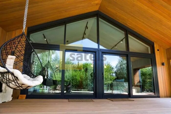 Очень популярны загородные дома в стиле барнхаус, отличительной особенностью которых можно назвать особую форму строения: простая геометрия (прямоугольная или квадратная форма), одно- или двускатная крыша с большими свесами, натуральные материалы (дерево, камень, металл) и панорамное остекление. Как остеклить такой дом? А этот вариант алюминиевого остекления барнхауса: Преимущества барнхауса: Барнхаус сочетает в себе сельский шарм и современные технологии, делая его популярным выбором для жизни за городом.