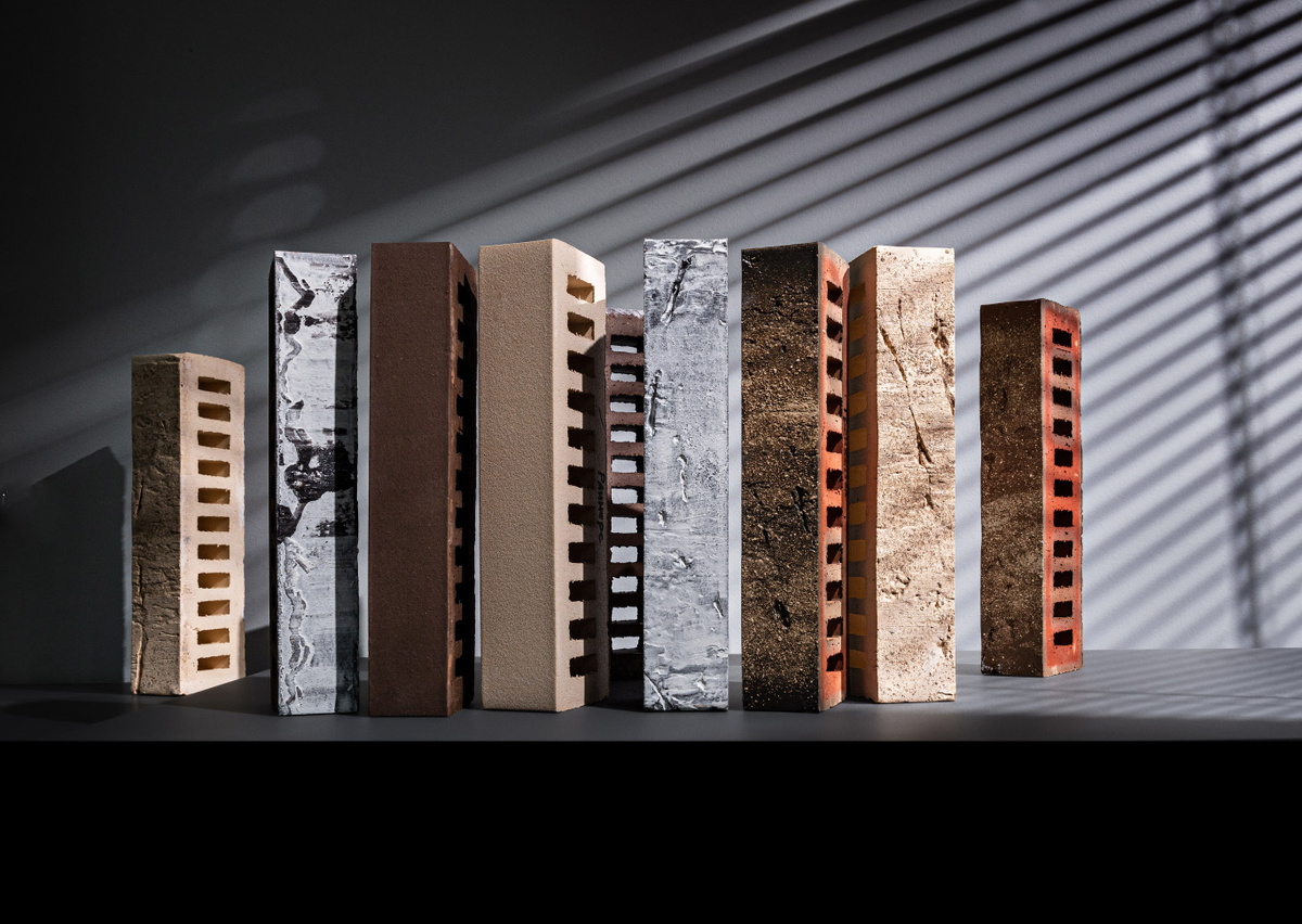 Что касается дизайна, в тренде черная, коричневая, серая, красная и белая цветовая гамма. Однотонные и пестрые оттенки используются в разных сочетаниях и в моно-кладке. Также увеличивается спрос на миксы. В пестрой кладке ригель выглядит особенно эффектно.