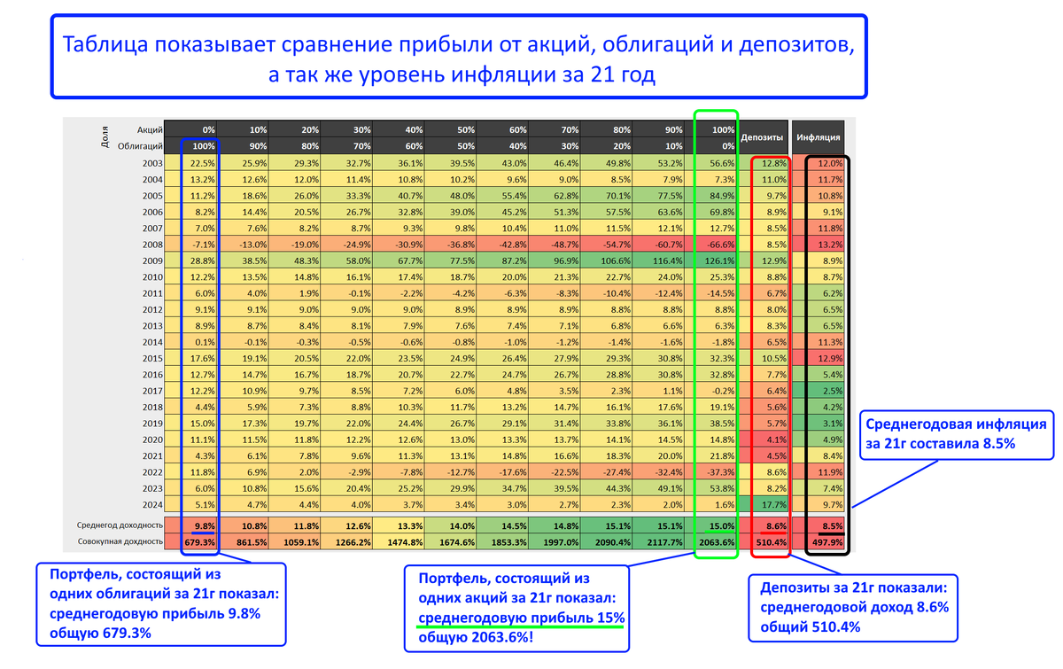 Акции же за счёт роста своих котировок и реинвеста дивидендов, путём сложного процента сп