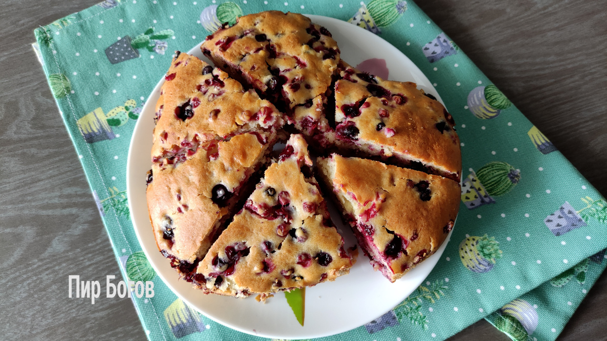 Пирог готовится просто. В нем мало теста и много ягод. У меня смородина и брусника замороженные, но можно взять любые. Пирог очень вкусный, ягодный и со сливочным вкусом. Состав: Способ приготовления: Взбейте яйца, щепотку соли, сахар и растопленное сливочное масло. Добавьте йогурта с ванилином и перемешайте. В муку добавьте разрыхлитель и соду. Перемешайте и частями просейте в тесто. Обязательно тесто перемешивайте, чтобы оно получилось однородным и эластичным. Ягоды обсыпьте крахмалом и выложите в тесто. Аккуратно перемешайте. Наверное, лучше выложить слоями (1/2 тесто, ягоды и ½ тесто), но мне нравится равномерное распределение ягод. Форму застелите пергаментом и смажьте маслом. У меня форма Ф20-24см. Выкладываем тесто и выравниваем сверху. Запекаем в разогретой духовке при 160С около 40-50мин. Ориентируемся всегда на свою духовку, проверяем на готовность деревянной шпажкой или зубочисткой. Готовый пирог вынимаем из формы после полного остывания. Видео рецепта можно посмотреть на п