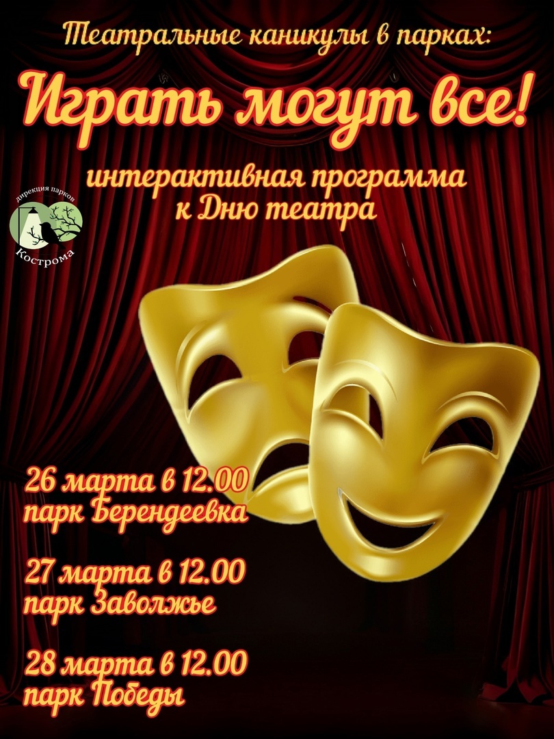 В Костроме с размахом отметят Всемирный День театра. Дирекция парков города анонсирует любопытную программу.