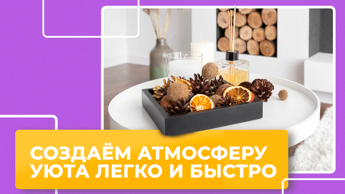 Комфорт и уют можно почувствовать не только глазами, но и обонянием. Запахи имеют сильное воздействие на наше восприятие пространства. Используйте ароматические свечи, эфирные масла или натуральные ароматизаторы (например, веточки ели, корицу или кофе). Такой подход легко и быстро создаст приятную атмосферу у вас дома.