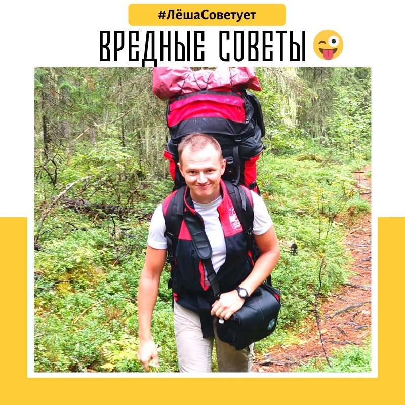 💥Нравится любоваться на звёзды лёжа в спальнике? Поставь свою палатку на ночь поближе к костру! И утром проснёшься в планетарии. 💥Запнувшись среди ночи о растяжку чьей-то палатки и упав на валяющийся на земле топор, не пугай спящих людей — не ори, будто тебя медведь начал любить. Будь мужиком, умри молча! 💥Во время похода, прежде чем вылезти утром из палатки, не спеши причёсываться. На улице тебя могут принять за чужака. 💥Хочешь в походе уничтожить свои ботинки быстро? Брось их в пропасть. Хочешь избавиться от них красиво? Утопи в озере. Хочешь это сделать медленно и вонюче? Оставь без присмотра сушиться у костра. 💥Тебя всё ещё волнует цвет своего рюкзака и ботинок? Не переживай! После третьего дождя это пройдёт. 💥Если твой рюкзак оказался в группе самым тяжёлым, постарайся незаметно от всех выкинуть из него газ, еду и палатку. 💥Первый поход в горы — это как первый день за рулём. Здесь главная задача не постоянно проявлять самостоятельность, а слушать инструктора, чтобы вернуть